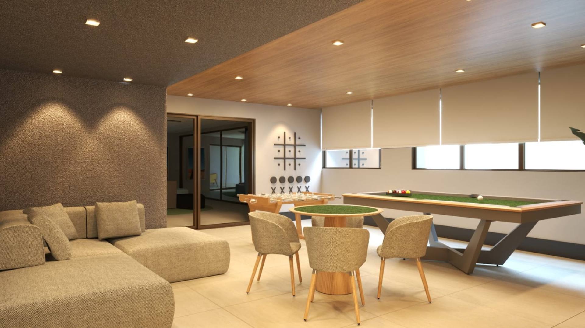 Uma área comum elegante, funcional e com ambientes que valorizam convivência, lazer e bem-estar.