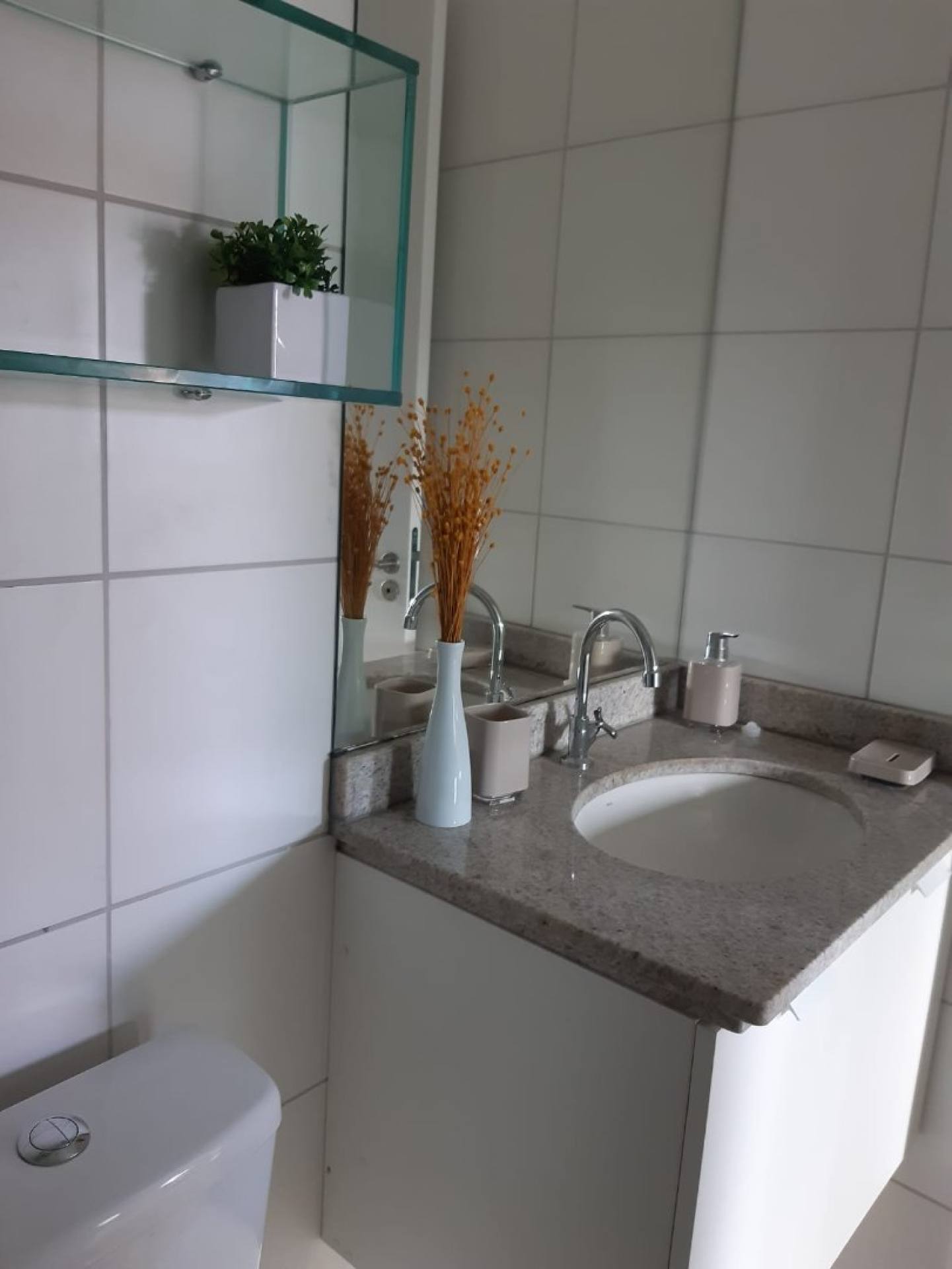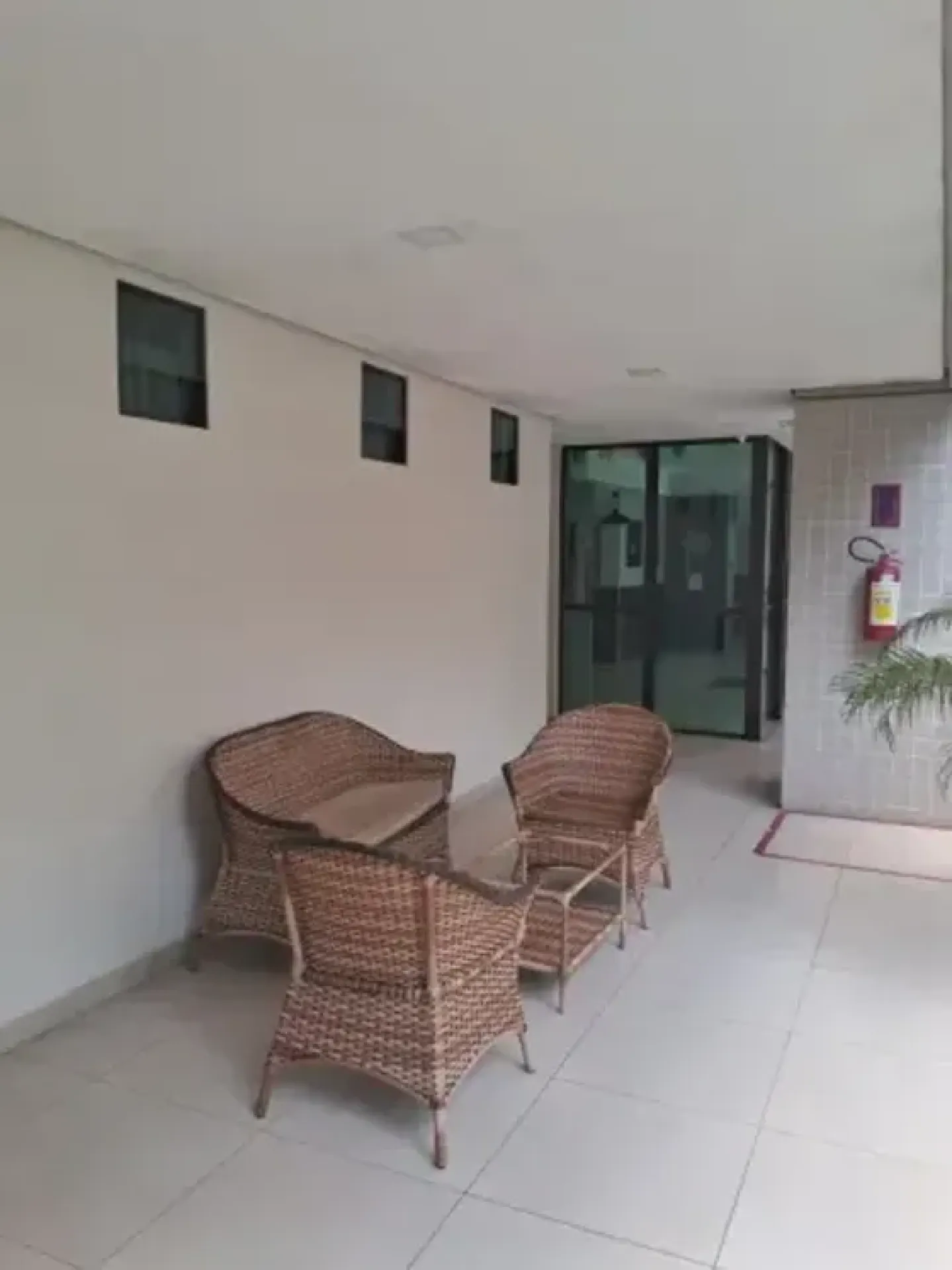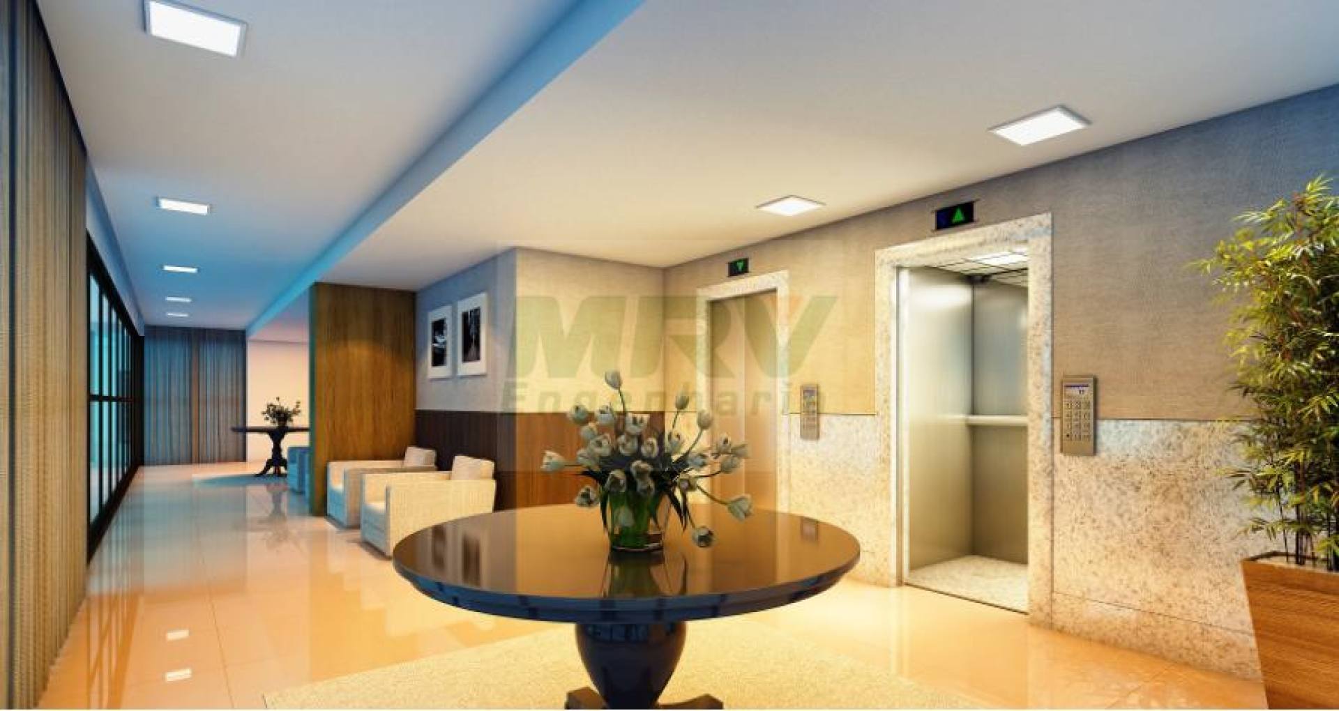 Hall social revestido em granito branco