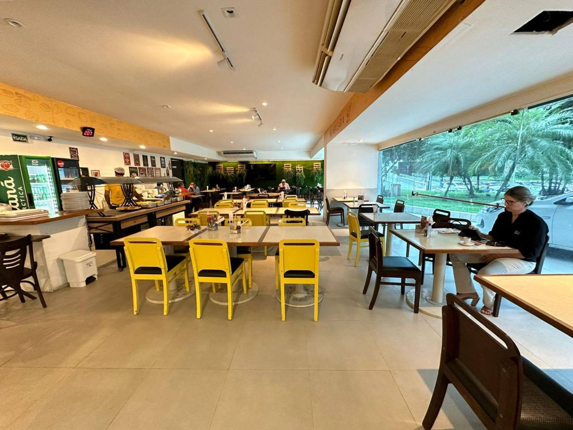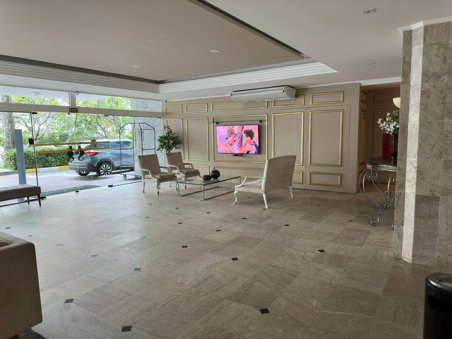 Sala ampla e climatizada, perfeita para receber amigos e família
